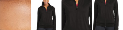 With contrast color detailing throughout, this double-knit jacket is right on trend with moisture-wicking performance and a left sleeve pocket for your phone or MP3 player.