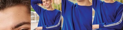 - Contrast-color set-in sleeve stripes