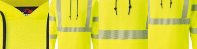 • 360° visibility with front and back 2" segmented heat seal silver reflective striping