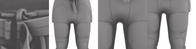 • Five sewn-in perforated Eva pads with stretch mesh pad pockets (hip, knees and tail)