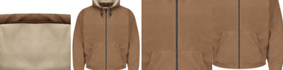 7.4-ounce, 80/20 cotton/poly 100% cotton face Front pockets 1x1 rib knit cuffs Twill back neck tape Stitched eyelets Jersey-lined hood Exposed antique brass YKK zipper Natural flat drawcord Locker patch for printable label Tear-away label