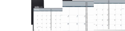 Wirebound monthly planner features a two-piece, embossed, simulated leather cover for a professional look. Planning pages range 14 months from December to January. Two-page-per-month spreads include large ruled daily blocks (2-1/8"" x 1-7/8"") for deta