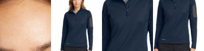 Smooth-faced fleece with a subtle grey print gives this 1/2-zip a sleek performance look. Reverse coil zipper, open cuffs and an open hem. Princess seams, welded zippered left sleeve pocket, contrast Eddie Bauer heat transfer logo on right hem. Made of 12.8-ounce, 95/5 poly/spandex.
