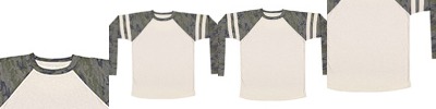 - Triple-needle coverstitched raglan sleeves, cuffs, side inserts and bottom band