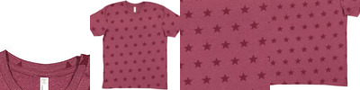 4.5 oz., 60% combed ringspun cotton, 40% polyester; Natural Heather is 100% combed ringspun cotton; Printed star vintage fine jersey; Topstitched ribbed collar; Self-fabric back neck tape; Double-needle sleeves and bottom hem; Side seam construction; EasyTear™ label; 2% of all Code Five™ sales are donated to children of Fallen Soldiers Relief Fund, Inc. and Fisher House™;
