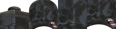 100% polyester; 6-panel, structured, mid-profile; Closed back, stretch fitted; Permacurv® visor, Silver undervisor, 8-row stitching on visor; Baseball cap with officially licensed Kryptek® pattern;