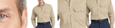 Arc Rating ATPV 8.6 calories/cm 2 FABRIC Flame-resistant EXCEL FR ® ComforTouch ® 7-ounce, 88/12 cotton/nylon FEATURES Industrial laundry friendly. Banded, topstitched, button-down collar. Placket front with button closure. Tailored sleeve plackets. Topstitched cuffs with button closures. STANDARDS NFPA ® 2112 compliant