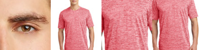 Our color-locking tee has a soft hand, wicks moisture and is energized with an allover heather pattern. 4.1-ounce, 100% polyester jersey with PosiCharge technology Removable tag for comfort and relabeling Set-in sleeves
