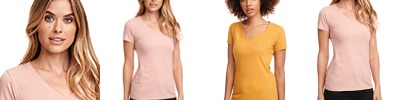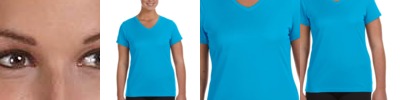 3.7 oz., 100% polyester wicking knit; Wicks moisture away from the body; Self-fabric collar; Heat-sealed label; Set-in sleeves; Double-needle hemmed bottom; Ladies' fit; Self-fabric V-neck collar; Double-needle hemmed sleeves;