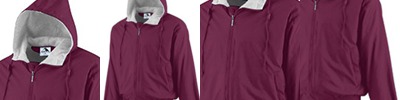 2.8 oz., abrasion-resistant 100% nylon taslan shell with polyurethane coating for enhanced wind- and water-resistance; 2.95 oz., 100% polyester dyed-to-match tricot big hole mesh lining in body; 1.7 oz., 100% polyester taffeta lining in sleeves; roll-away three-piece hood with 1¼" rain bill; Black 3/8" taping adds contrast to back and sleeves; EZEM zipper in back lining for easy decoration access; center front/lower pockets with molded plastic zipper with garage;