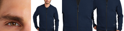 Stretch your layering options with this modern full-zip that was inspired by the classic bomber jacket. 8.5-ounce, 87/13 cotton/spandex knit Lightly brushed OGIO heat transfer label for tag-free comfort Back locker loop Baseball-style rib knit collar Rib knit collar, cuffs and hem Center front reverse coil zipper with rubber OGIO pull Front flange across body Front exposed coil zippered hand pockets Black reflective O heat transfer on front left hem