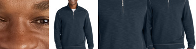 A fashionable sweater alternative, youâ¿¿ll always look pulled together and sophisticated in this comfortable 1/2-zip that features a slub texture knit and sun-bleached wash. 11.7-ounce, 45/33/22 cotton/pima cotton/ Tencel ™ Lyocell Pigment garment overdyed fabrication Mockneck with 1/2-zip placket Side panels built-in for stretch Rib knit cuff and hem Distinctive contrast stitching Embroidered Marlin at center back neck Cut-out Marlin on zipper pull