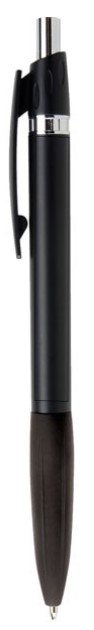 Executive pen good looks give this promotional pen high end appeal. Metallic jewel tones with shining chrome accents and a ridged black rubber jumbo grip fit comfortably in the hand while standing out. Features black ink.