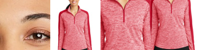 This lightweight pullover locks in color, wicks moisture and has an amped up colorblock look. 4.1-ounce, 100% polyester yarn-dyed jersey with PosiCharge technology (Electric Heather) 4.7-ounce, 100% polyester jersey with PosiCharge technology (solid) Removable tag for comfort and relabeling Cadet collar Reverse coil zipper Colorblock on shoulders and sleeves Princess seams Set-in sleeves Open cuffs and hem Drop tail hem