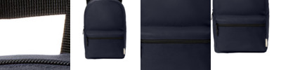 100% recycled 600D polyester This product's carbon footprint has been measured and reduced through a combination of preferred materials and investing in carbon offset projects through the ClimeCo Certified Product Program Large main compartment Padded shoulder straps Front zippered pocket Exterior woven label that says 100% RECYCLED FABRIC Dimensions: 17'h x 12'w x 6'd; Approx. 1,224 cubic inches Note: Bags not intended for use by children 12 and under.