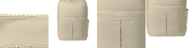 Smooth matte polyester with knitted cloth Zippered main compartment Dyed-to-match metal zipper pulls Pleated front zipper pocket Dyed-to-match molded zippers Adjustable shoulder straps Side pocket Web carry handle Laptop sleeve dimensions: 11'h x 17.7'w x 0.98'd; fits most 16' laptops Dimensions: 17.7'h x 11.4'w x 5.5'd Capacity: 1,343 cu. in./22 L Weight: 0.8 lbs./0.4 kg Note: Bags not intended for use by children 12 and under.