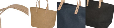- Eco-Responsible Reusable tote bag made of laminated Jute fabric with Leather handles