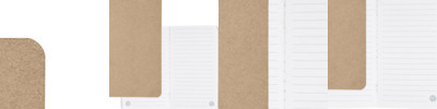 - Pocket-sized notebook with lightweight cardboard cover, stapled binding