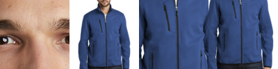 This sleek, tech-inspired soft shell resists wind, repels water and features an undeniably on-trend colorblock look. 100% polyester woven shell bonded to a water-resistant film insert and a 100% polyester microfleece lining 1000MM fabric waterproof rating 1000G/M2 fabric breathability rating Zippered chest pocket Molded center zipper Hidden front zippered pouch pockets