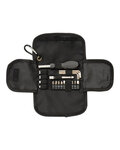 - 20-piece tool kit with components packed in case with hook and loop style closure and carabiner at corner