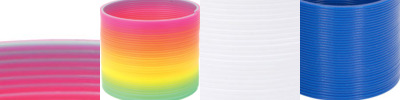 - Round spring-like coil toy that travels down stairs for hours of fun