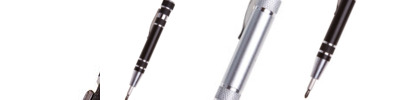 - 8-piece pen-style tool kit with internal magnet that holds pieces in place