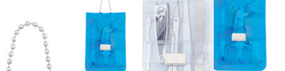 • 5 Piece manicure set packed in a slim translucent vinyl case with snap-closure and a convenient bead chain