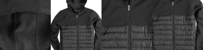 - Solid: 90% polyester, 10% spandex bonded softshell upper body and sleeves