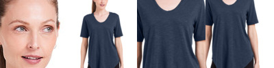 53% organic cotton, 43% bamboo viscose, 4% lycra® spandex, 140gsm slubbed jersey; Moisture-wicking, UPF 50+, anti-odor; Made with organic cotton and renewable bio-degradable bamboo fibers ; self U-shaped collar; Tagless at inner neck; Longer short sleeves; Extemely curved shirttail hem; Sewn in care and content label at lower left side seam; Woven tab logo folded over left side hem; Relaxed fit; Fabric and garments are manufactured in a facility 100% powered by solar and wind energy. Fabric and garments are manufactured in a GreenCo certified facility. 450g of CO2 are saved with the production of each garment ;