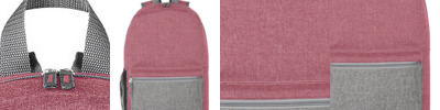 Zippered main compartment, front zippered pocket and mesh side bottle pocket