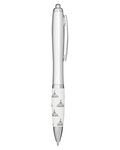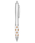 Retractable curvy plastic barrel ballpoint pen with stock art grip featuring a Church Emoticon