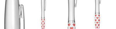 Retractable curvy plastic barrel ballpoint pen with heart/healthcare theme stock art grip