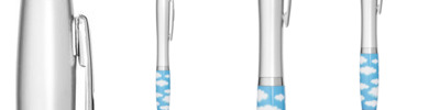 Retractable curvy Plastic barrel ballpoint pen with cloud or technology theme stock art comfort grip