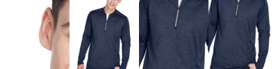 - 6 oz. polyester heather pique contrast in upper body