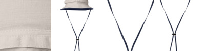 Ripstop fabric Unstructured bucket fit Nautica debossed metal side snaps Woven Nautica patch on center back Adjustable neck strap with toggle