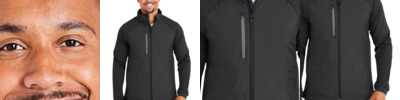 • Tone-on-tone neck, cuff, and bottom hem ribbing
