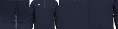 • UA woven label centered on left sleeve hem and UA heat seal center back neck