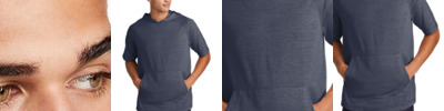 This short sleeve hoodie combines moisture-wicking performance, unbeatable softness and PosiCharge technology to lock in color. 4.4-ounce, 75/13/12 poly/cotton/rayon jersey with PosiCharge technology 4.6-ounce, 75/13/12 poly/cotton/rayon jersey with PosiCharge technology (Black Triad Solid) Removable tag for comfort and relabeling Self-fabric hood Dyed-to-match neck taping Raglan sleeves Front pouch pocket