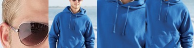 - Two-ply hood with rib trim, contrast color liner and drawcord